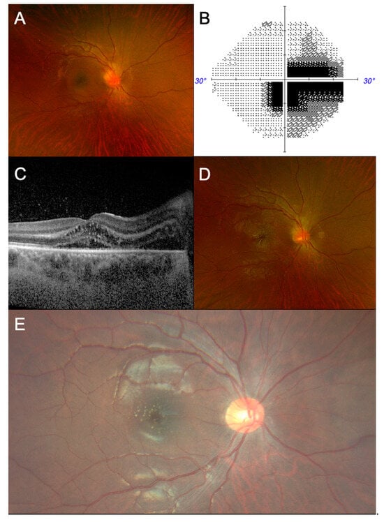 - Dreyer, R.F.; Hopen, G.; Gass, J.D.; Smith, J.L. Leber’s idiopathic stellate neuroretinitis. Arch. Ophthalmol. 1984, 102, 1140–1145. [Google Scholar] [CrossRef]