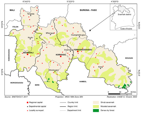 - Ekra, J.Y.; N’goran, E.K.; Mboera, L.E.G.; Gragnon, B.G.; Assovié, K.R.N.; Mafie, E.M. Molecular Epidemiological Survey of Pathogenic Trypanosomes in Naturally Infected Cattle in Northern Côte d’ivoire. Parasites Hosts Dis. 2023, 61, 127–137. [Google Scholar] [CrossRef]
