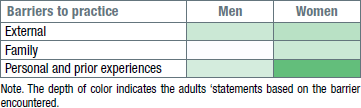 48. In this context, in older adults, the proportion of personal barriers was higher among women compared to men, data in agreement with those found in several studies