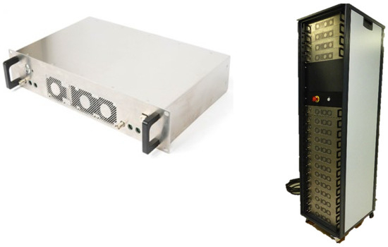 New PLA25 (left) and final version of the cabinet (containing 17 PLA25®) used to drive the 17 actuators (right).