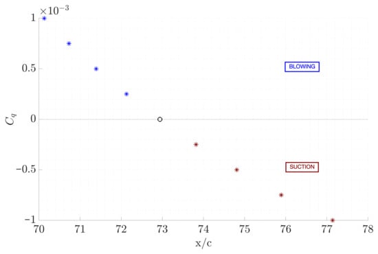 To implement active flow control techniques, the suction ratio has to be defined, indicating the efficiency of suction or blowing of the flow. It is defined as the ratio between the flow rate of the suctioned fluid and the flow rate of the available fluid. In this study, the is imposed, and both the suctioned and the available mass fluxes are determined based on the definition given in MISES.