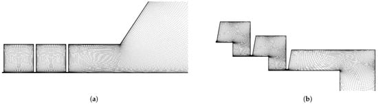 Zoomed-in image of the mesh: (a) straight-through labyrinth seal in the backface cavity; (b) stepped labyrinth seal in the cover disk cavity.