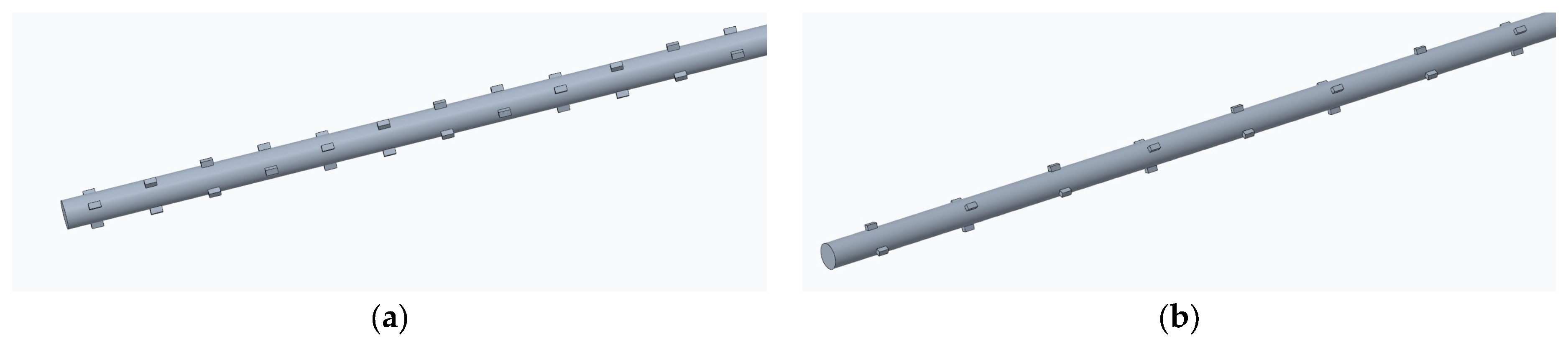 - Li, T.; Lu, N. Numerical investigation on noise and flow characteristics of a circular cylinder with helical grooves. Discov. Appl. Sci. 2025, 7, 699. [Google Scholar] [CrossRef]