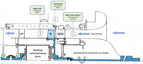 - Lakshminarayana, B.; Camci, C.; Halliwell, I.; Zaccaria, M. Design and Development of a Turbine Research Facility to Study Rotor-Stator Interaction Effects. Int. J. Turbo Jet Engines 1996, 13, 155–172. [Google Scholar] [CrossRef]