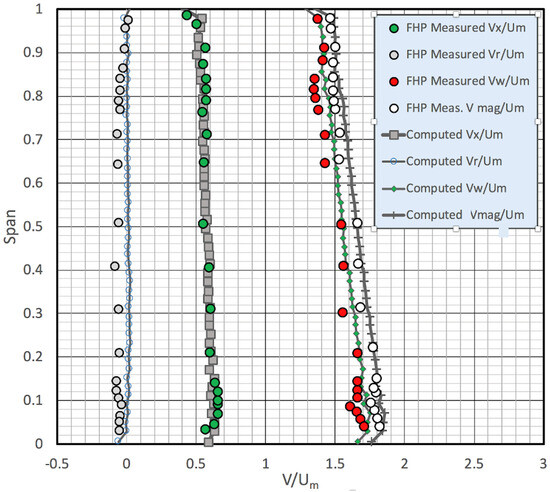 A comparison of measured and computed velocity components downstream of the AFTRF NGV [47,50].