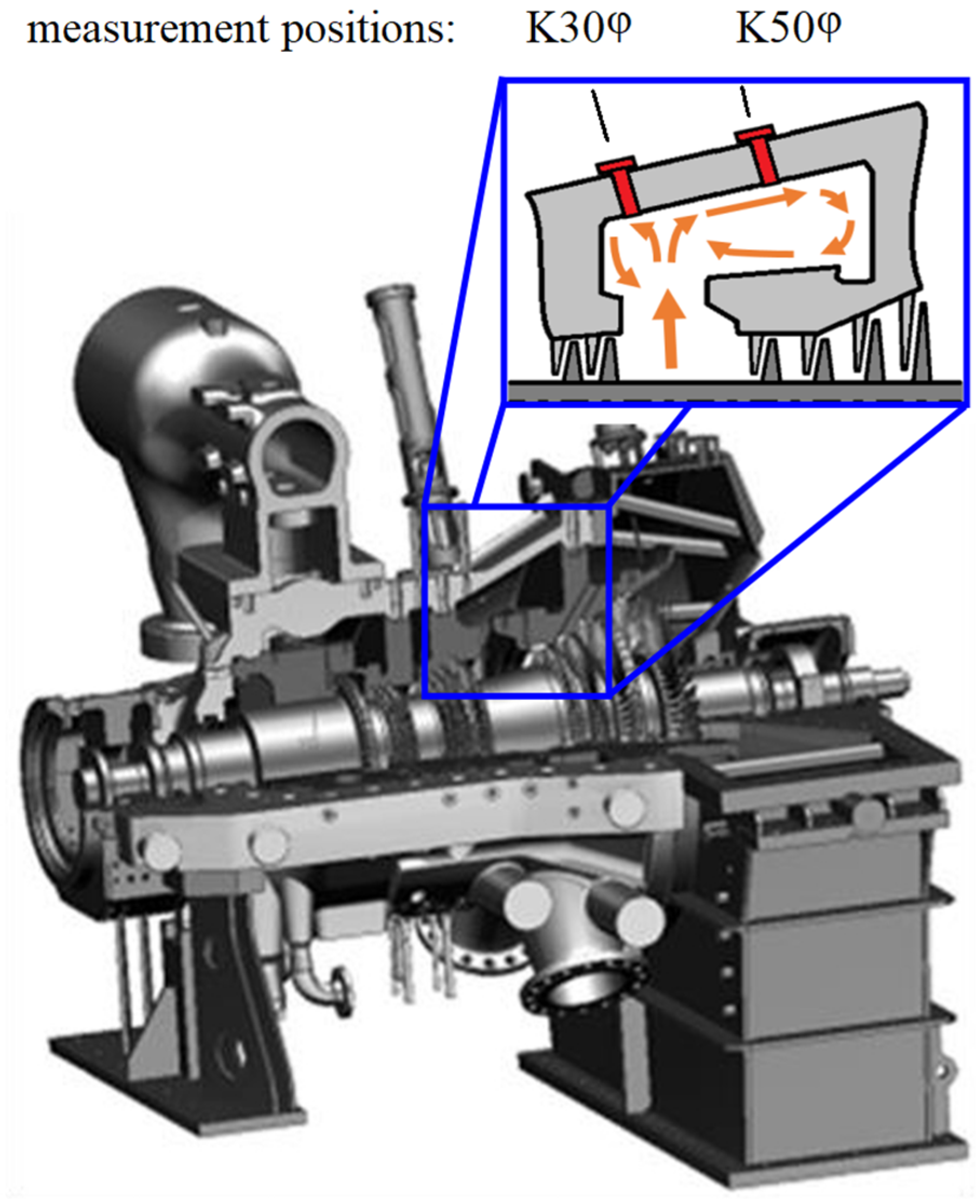 Heat transport in side spaces of steam turbines are not fully understood yet. Although steam turbines have been providing electricity and heat for a long time, the specification of thermal boundary conditions is still imprecise in some machine sections. Numerical engineers require valid measurement data as reference points for the specification of thermal boundary conditions to correctly calculate thermal expansions during operation, which have an impact on deformation and also on the split flange and its tightness. Component life time is also significantly affected by these influences.