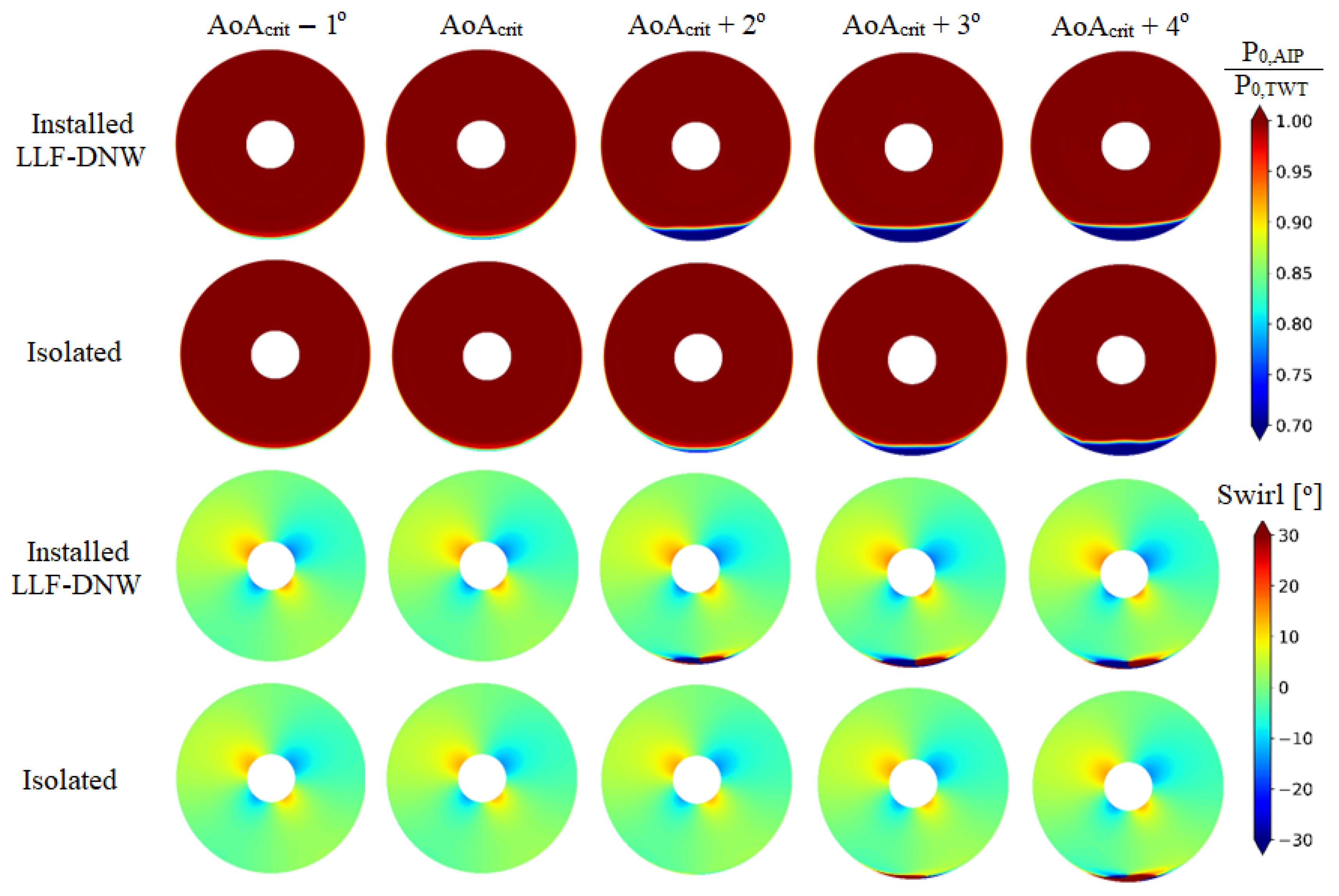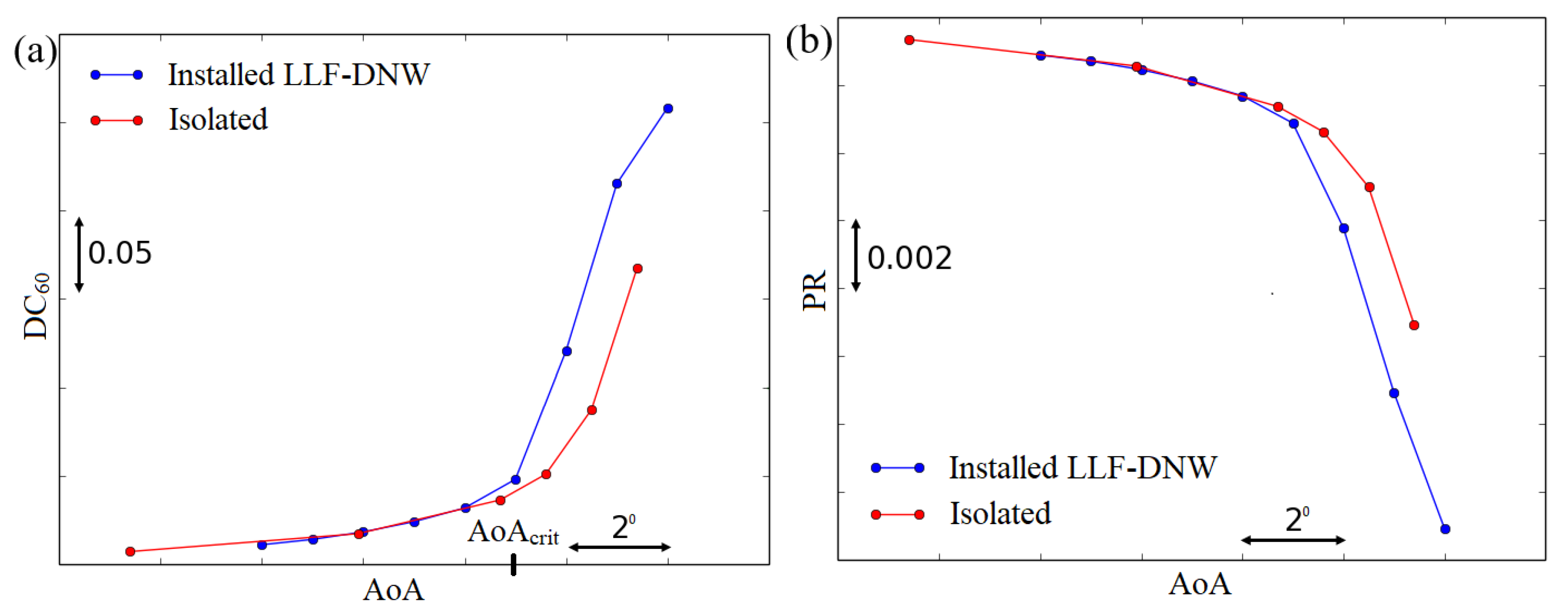 3.1. Comparison Between Isolated and Installed LLF-DNW Intake Aerodynamics