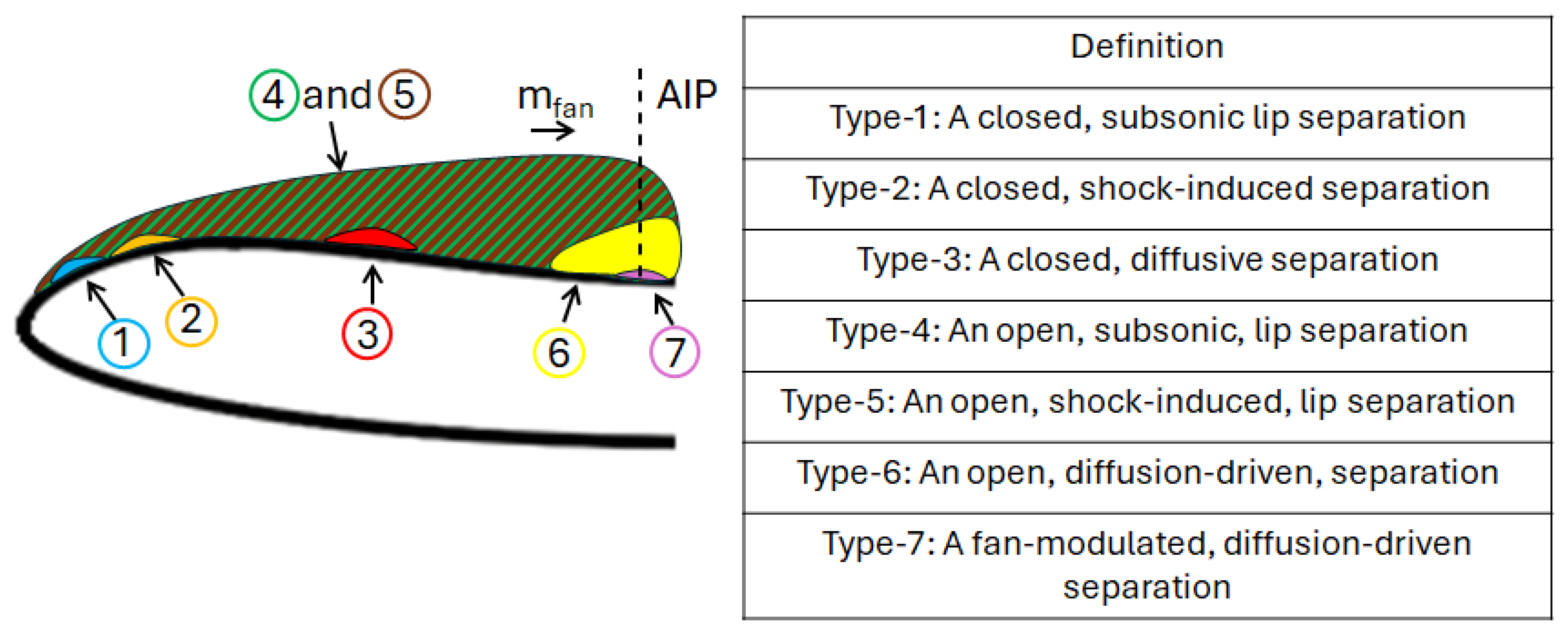 - Tejero, F.; MacManus, D.; Hueso-Rebassa, J.; Frey, Y.; Bousfield, I. Aerodynamics of a Short Intake at High Incidence. In Proceedings of the 16th European Turbomachinery Conference, ETC2025, Hannover, Germany, 24–25 March 2025. Paper ETC2025-298. [Google Scholar]