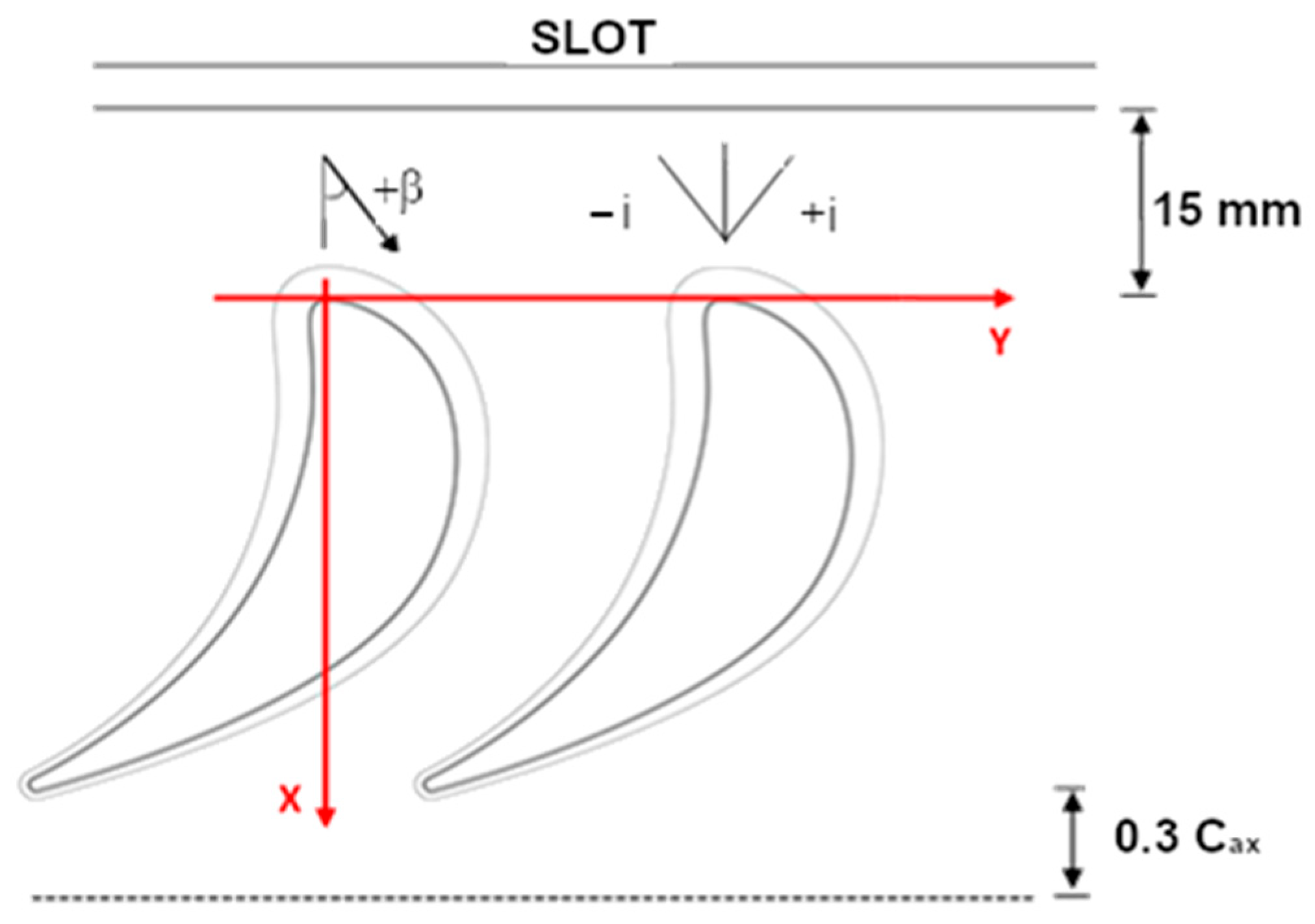 | β1 = 30.87° | Re2is = 1.51 × 106 | Re2is = 0.55–1.1 × 106 |