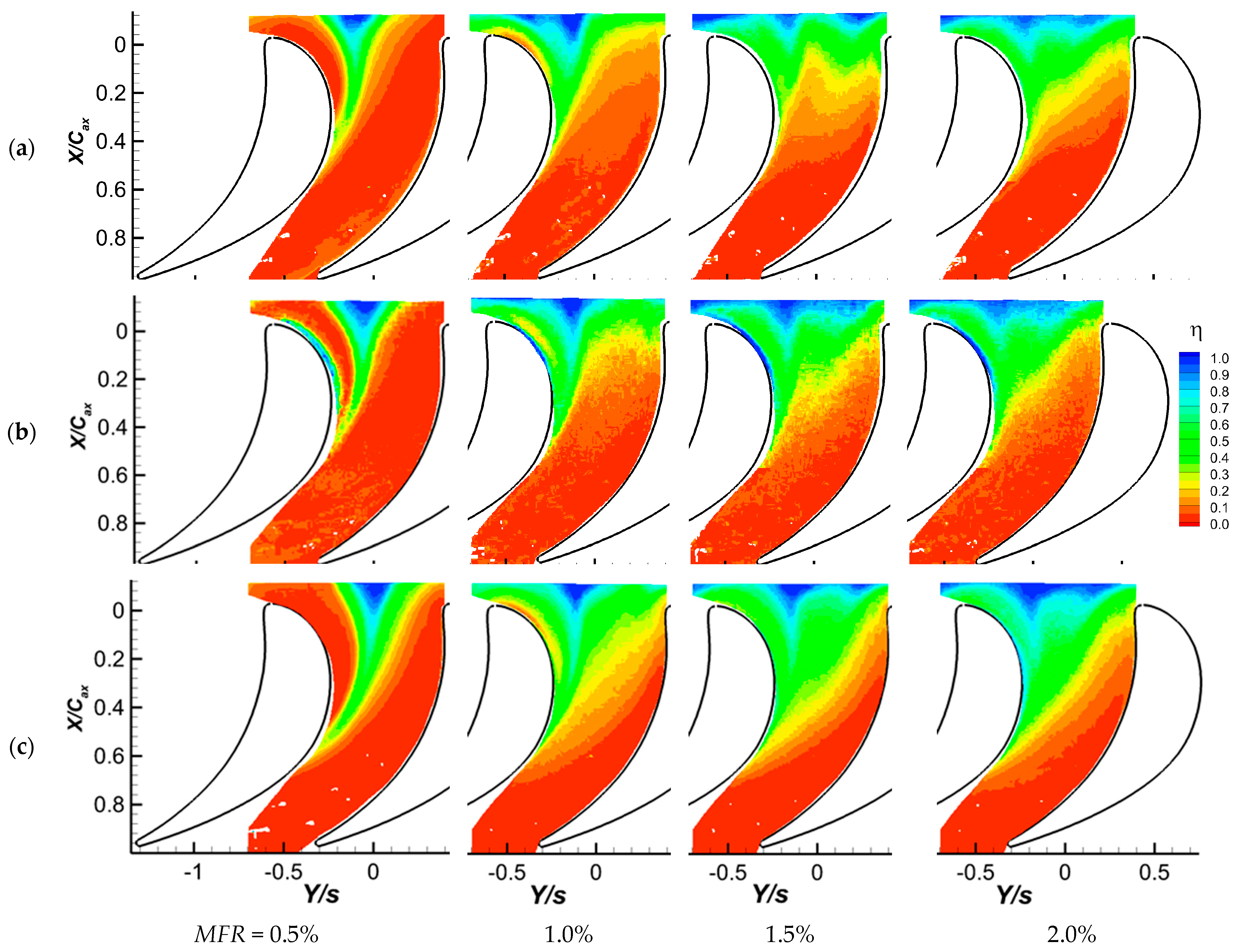 5.2. Film Cooling Effectiveness