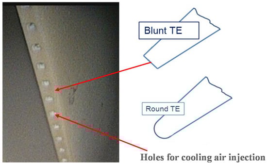 Most of the vanes and blades of state-of-the-art cooled turbines have thick trailing edges to allow injection of cooling air into the flow path. The shape of trailing edges may differ depending on the applications but two main types are used: round trailing edges and blunt trailing edges. Figure 8 shows the blunt trailing edge of the real cooled blade.