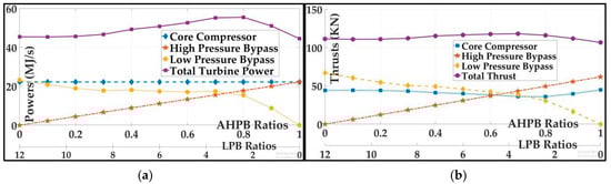 4.1. Varying Low-Pressure Bypass and Auxiliary High-Pressure Bypass Ratios for Maximizing Thrust and Overall Efficiency