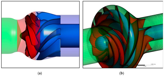 Numerical model for the variable pitch pump (a) and the low nq pump (b).
