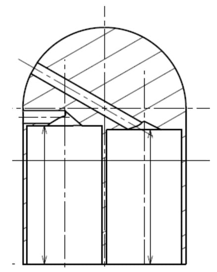 A preliminary analysis of the sFRAPP is reported in [], and its first application downstream of a turbine stage is documented in []. The probe operating mechanism is still based on multiple pressure readings taken at different rotations of the probe around its own stem: the combined use of four pressure readings allows to measure both the flow directions, alongside total and static pressure. The configuration shown in Figure 2 allows reconstructing both the flow directions with just 3 rotations, while 4 rotations are required for the configuration with 2 opposed taps (a further rotation shifted by 180° with respect to the central one of the others). However, the use of opposed taps allows reducing the dimension of the internal cavities as, in this latter case, a shorter line connects the ‘pitch’ tap to the sensor. Theoretical estimates and experimental dynamic calibrations showed a reduction of promptness to 40 kHz, about half of the promptness of the sFRAPP with opposite taps, but still very high and fully suitable for typical turbomachinery applications.