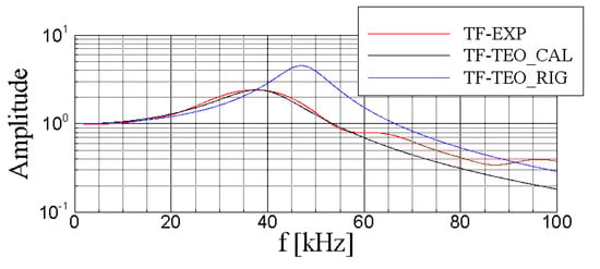 Figure 8 shows the impact of combined temperature and pressure correction on the amplitude of the transfer function determined in the shock tube (TF-EXP). For this probe, a nearly perfect dynamic linearity is observed up to 60 kHz, with natural frequency at about 40 kHz, as shown by the comparison with the analytical second order transfer function (TF-TEO_CAL). By considering an application at the maximum temperature level technically available for the FRAPP (550 K), a correction to the analytical transfer function was applied to get the analytical transfer function in the real environment of the test rig (TF-TEO_RIG). The impact of the corrections is negligible up to 20 kHz, while a relevant deviation occurs for a frequency higher than 40 kHz.
