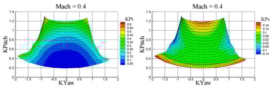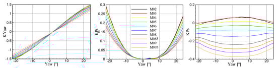 As reported in Figure 10, the KPt and KPs coefficients are regular over the grid KYaw-KPitch and for this, they seem easily applicable. However, they exhibit an overlapping zone at the boundary of the matrix that leads to non-unique solutions during the interpolation procedure.