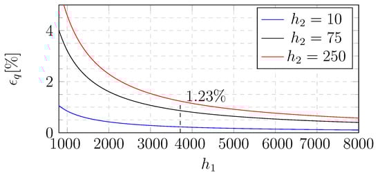 The inner wall temperature in Equation (2) is not directly measured. Instead, the inlet water temperature is measured by an RTD at the inlet and the wall temperature is assumed to be constant over the instrumented vane. This is a valid assumption if two conditions are met. Firstly, the inner wall water-side thermal heat transfer coefficient is infinitely large. Secondly, there are no water temperature changes along with the flow in the water channel. The effect of the first assumption is evaluated by comparing the estimated heat flux shown in Equation (4) to the case of infinitely high inner wall heat transfer coefficient , as shown in Equation (5). The comparison between the two is formulated in Equation (6) and provides an assessment of the bias error caused by the first assumption. Note that the radiative heat flux is neglected in as performed by Arroyo et al. [3], this provides a more conservative assessment of the bias error.
