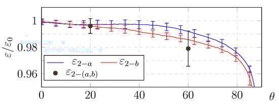 Figure 8 shows the angular dependence for spray () and brush () application. Values for , are based on 320 samples and the error bars depict two standard deviations along the length of the cylinder during calibration. The absolute value of the emissivity of both coatings was measured with an ET-100 thermal handheld emissometer at at 20 and 60 degrees. The mean measured value is marked as in Figure 8 and the error bars show the full range of 10 samples from the handheld emissometer.