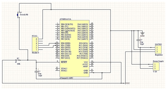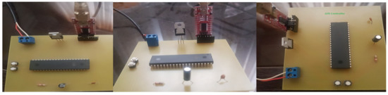 Among different types of hardware, the AVR family has a lot of advantages including easy to program in C for most basic functions, adequate documentation, inexpensive, hobbyist friendly (parts in through-hole packages), nice peripherals (built-in oscillator, flash memory, onboard RAM, serial ports, ADC, EEPROM, etc.), low power consumption, and good cross-platform support. Therefore, the AVR Microcontroller (ATMEGA 32A) was chosen in this study. There is much evidence in the literature that confirms the use of ATMEGA family for controller hardware implementation because of the above-mentioned advantages [24,25,26,27,28,29,30]. The procedure of implementation is described in detail in this section: