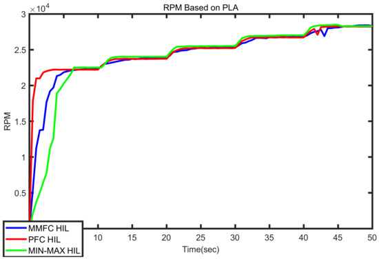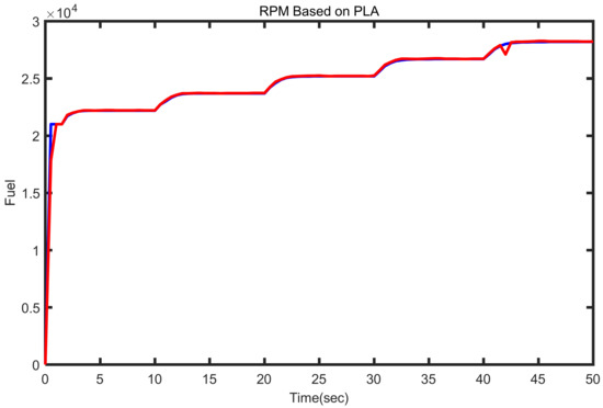 As shown in previous sections, fuzzy controllers take PLA and RPM as inputs and after calculation and execution of fuzzy rules, return the fuel flow signal as the output. This number is applied to the servo that controls engine fuel. The designed hardware can take PLA and RPM in the form of integer numbers (between 0–255) and output is a digital number between 0–255. An internal microcontroller clock was activated to counting transmission sensors pulses at a specified time for calculating the frequency and reading serial port for receiving PLA and engine rotational speed. The time-step is important because of calculating error derivative. The written codes for calculating time and receiving and transferring data are presented in the Appendix A in detail [Appendix A.1, Appendix A.2].