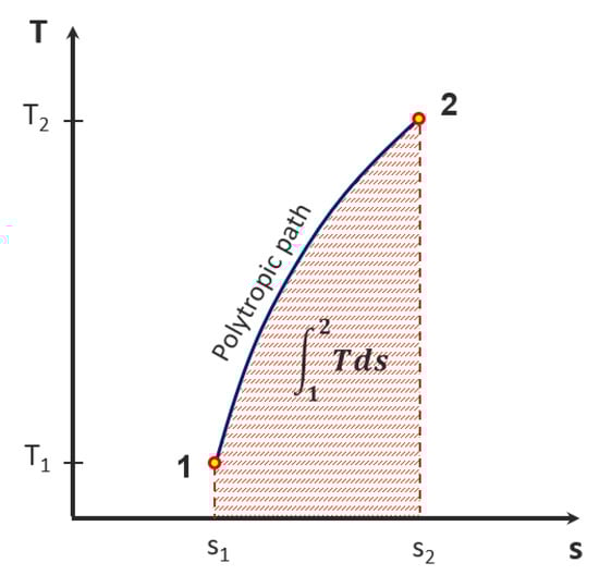 The polytropic compression process is defined as a reversible and non-adiabatic process, in which the ratio of useful compression work, to the change of enthalpy, , remains constant along the polytropic compression path as defined by Equation (2) and illustrated in Figure 1.