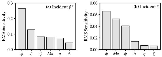 Figure 9 summarises the results of the design space study. We rank the parameters of Equation (3) in order of their influence on pressure wave and entropy–acoustic reflectivity. To quantify the average sensitivity to each parameter, we take the root-mean-square acoustic impedance change with respect to the datum value of that parameter.