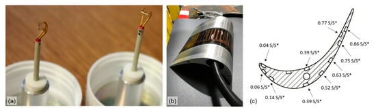 - Sinkwitz, M. Experimentelle Untersuchung der Entstehung von Sekundärstömung in Turbinen-Ringgittern unter Periodisch-Instationärer Zuströmung. Ph.D. Thesis, Ruhr-Universität Bochum, Universitätsbibliothek, Bochum, Germany, 2021. [Google Scholar] [CrossRef]