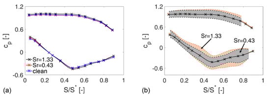 The aerodynamic blade loading is shown in Figure 8b by means of the pressure coefficient