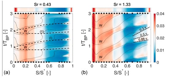 - Wissink, J.G.; Rodi, W. Numerical study of the near wake of a circular cylinder. Int. J. Heat Fluid Flow 2008, 29, 1060–1070. [Google Scholar] [CrossRef]