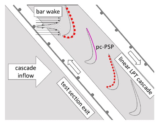 - Bitter, M.; Niehuis, R. Effects of Periodic Inflow Turbulence on the Statistics in the Wake of Linear LPT Cascade at Jet-Engine relevant Test Conditions. In Proceedings of the 13th Symposium on Particle Imag. Velocimetry (ISPIV), Munich, Germany, 22–24 July 2019. [Google Scholar]