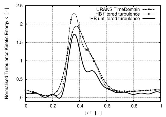 The second HB approach resolves the unsteady turbulence components and by the number of harmonics listed in Table 1. As explained in the following and motivated in [8,11], the HB method is then prone to numerical instabilities induced by the unsteady consideration of the turbulence model. Thus, this HB approach requires the application of a Lanczos-type filter method and is therefore in the following abbreviated with HB-.