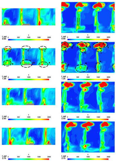 Figure 5, led to an earlier emergence of the high-velocity zone on the left side.
