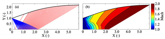 Figure 1b presents the related Mach number distribution computed by MoC for the same nozzle.