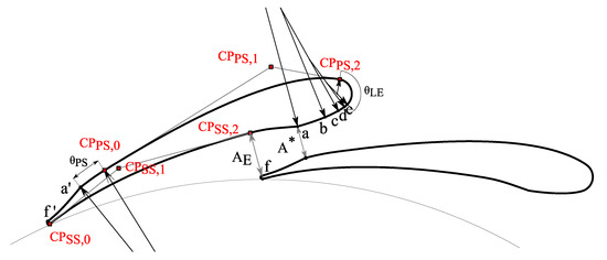 The subsonic part of the pressure side consists of a circle (a’-CPPS,0) with the same radius and angular extension () as the first circle of the subsonic suction side construction (a–b), and a 2nd order Bezier polynomial defined as in the uncovered suction side case.