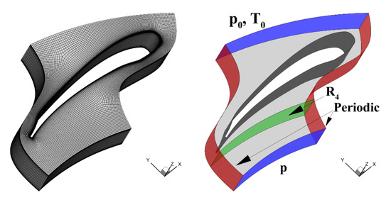 20]. For axial turbine convergent–divergent stators, it has been demonstrated that increasing the outlet flow angle leads to higher downstream mixing losses and flow field non-uniformity, since the wake is closer to the suction side of the adjacent vane [