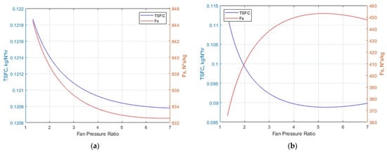 Plots of performance vs. FPR for [6] (a) turbojet and (b) turbofan.