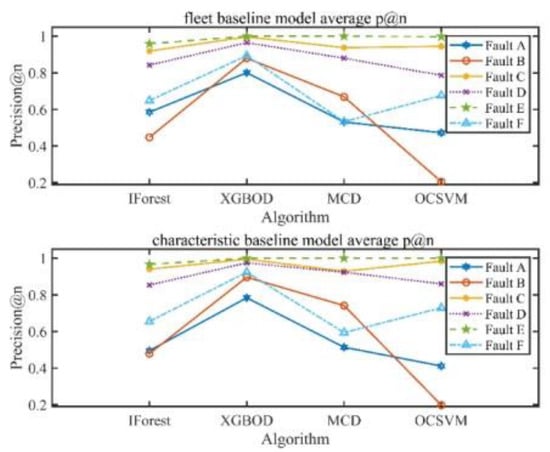 Second, most algorithms obtain better detection results when the input performance parameters are nine. However, the MCD algorithm performs even better when the input parameters are seven, which may be related to the internal calculation of the Mahalanobis distance. When the dimensionality of the data point increases, the calculated Mahalanobis distance will also increase. If the fault information can be reflected by only a few parameters, adding more parameter dimension may cover up the fault information which needs to be expressed by the value of distance, and it may lead to the misjudgment of the algorithm.