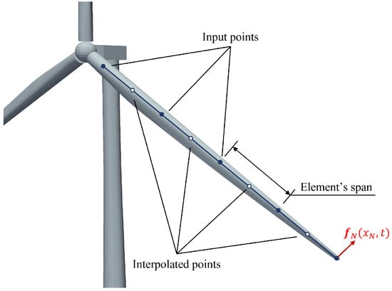 Actuator line scheme: N is the number of elements, are position vectors, and are aerodynamic forces.