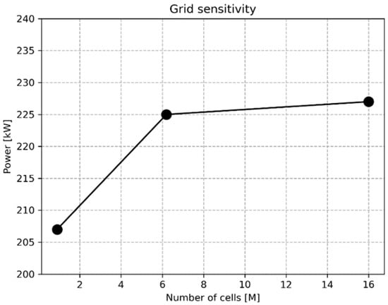 Grid sensitivity analysis based on a power comparison between grids with different rotor cell refinement.