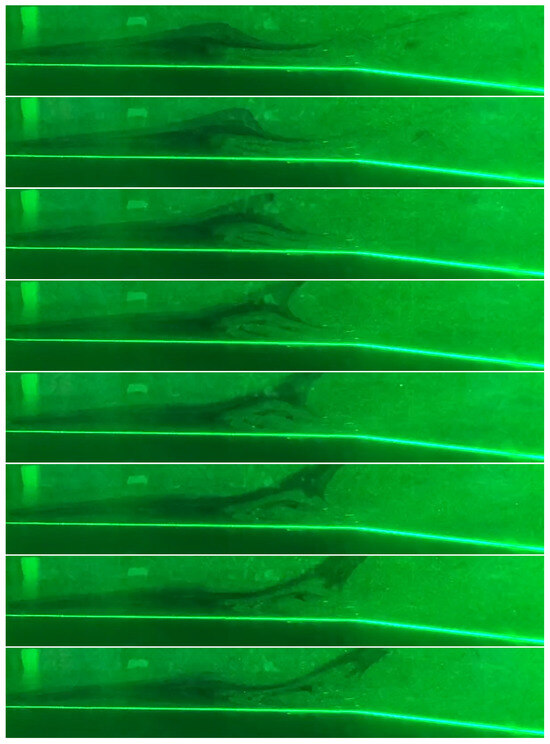 Figure 2 reports exemplary flow visualizations of the operating PIV system for a very low Reynolds number case. The dark region in the pictures corresponds to the separated shear layer evolving above the plate surface. Depending on the flow Reynolds number, wall-normal oscillations of the separated shear layer were observed, characterized by significantly different central frequency (Boutilier and Yarusevych [