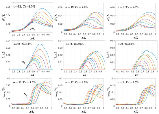 Figure 6) highlight the changes in the dynamic properties of the tested laminar separation bubbles. For all APG and