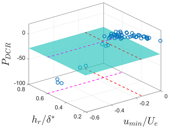 7]. Then, two additional parameters are used for the characterization of the instability process for the different cases examined. The first one is the ratio between the maximum height of the recirculating flow region and the local boundary layer displacement thickness, i.e.,
