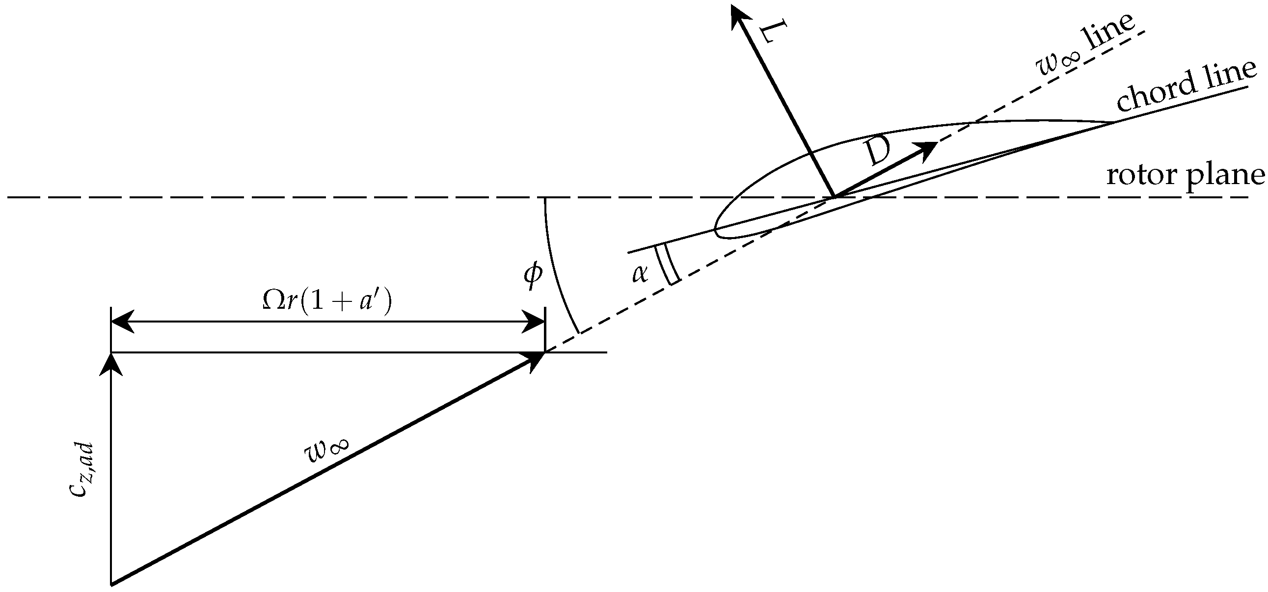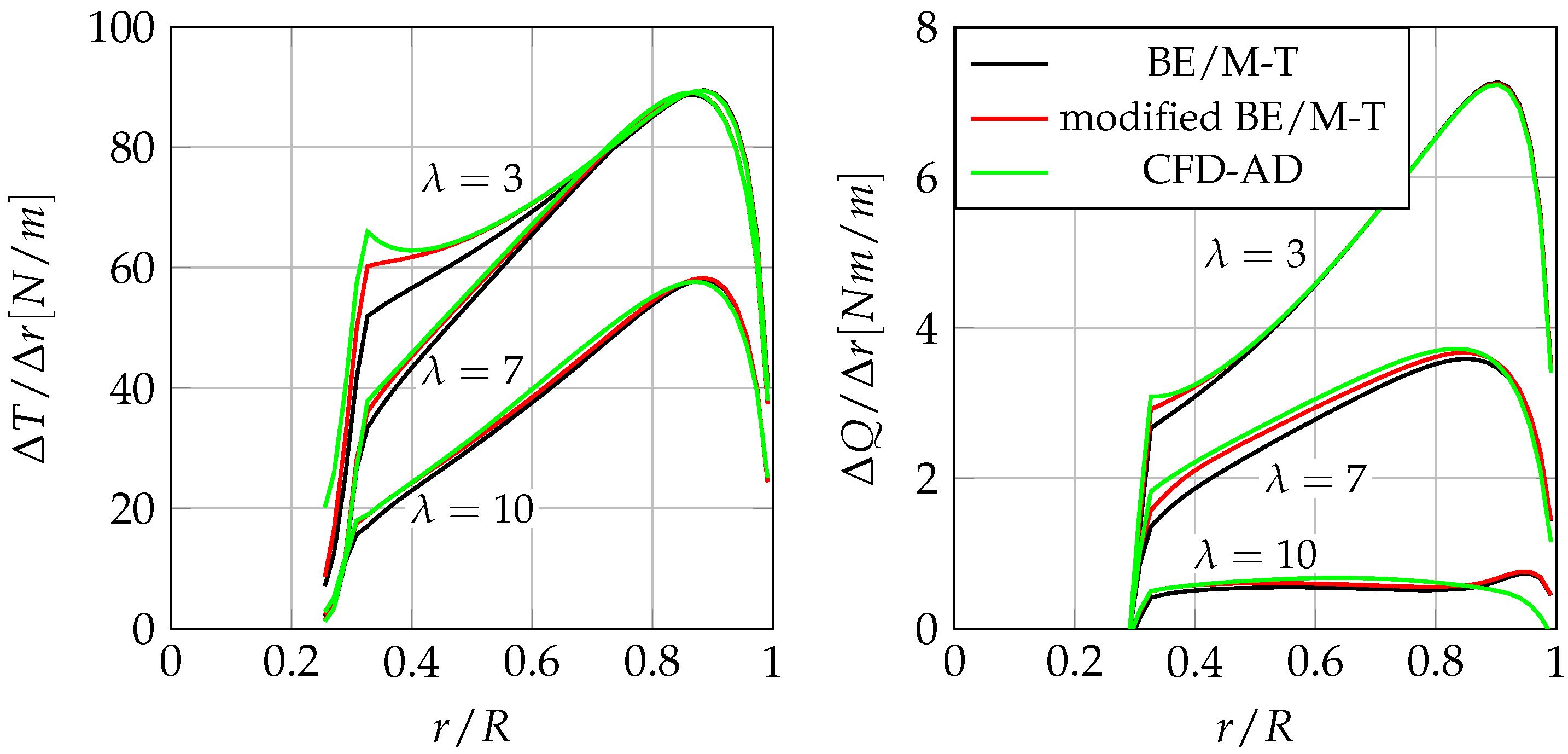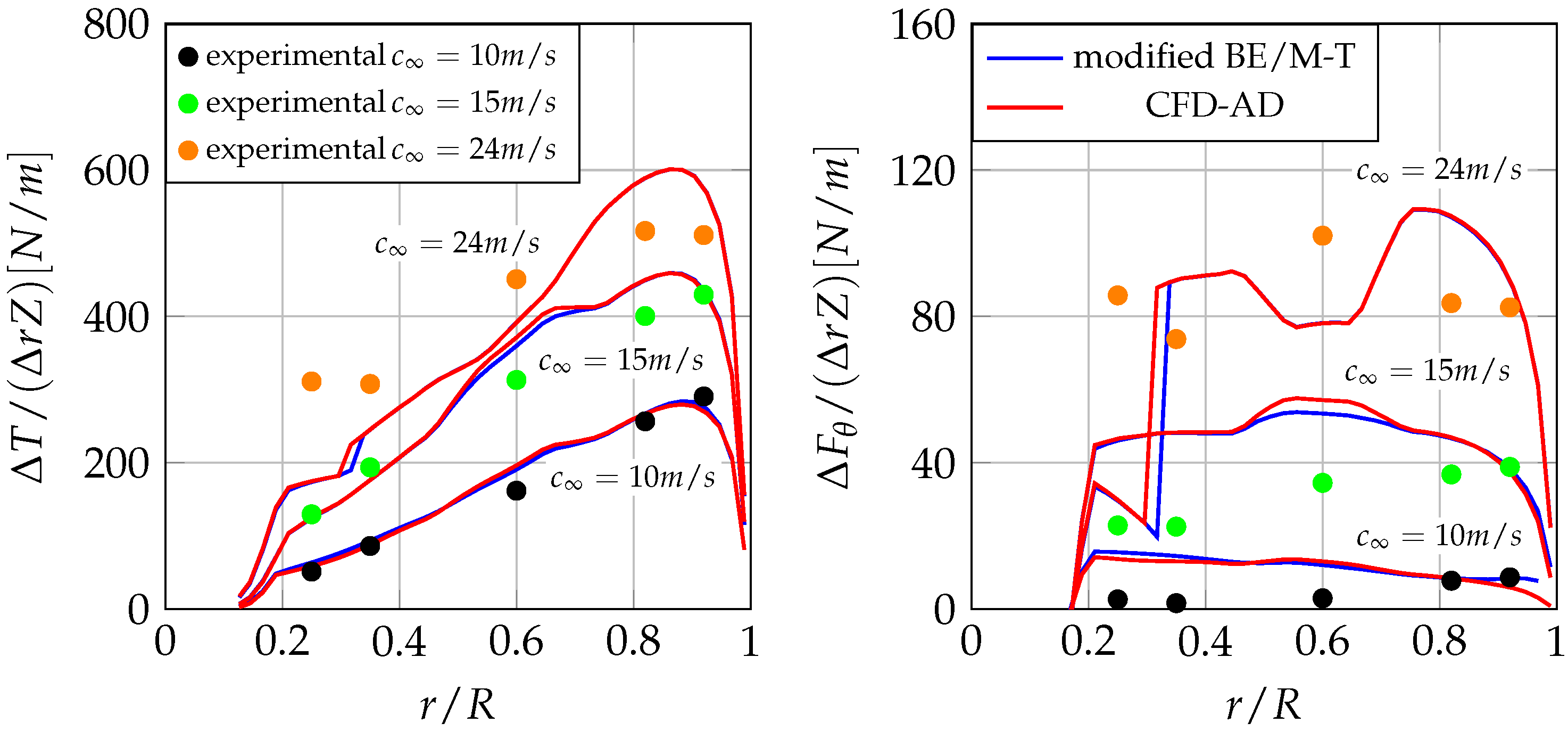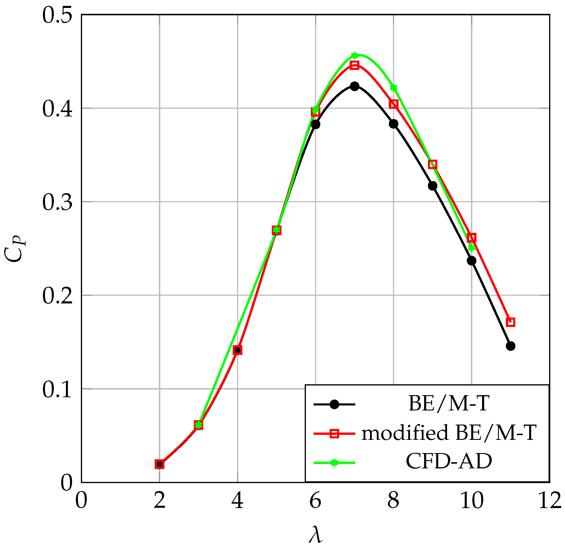 Figure 2. The validity and accuracy of the modified BE/M-T model are tested by comparing its results with those of a more advanced CFD-actuator-disk (CFD-AD) approach, which naturally and duly takes into account the hub blockage, the rotor presence, and the wake divergence and rotation.