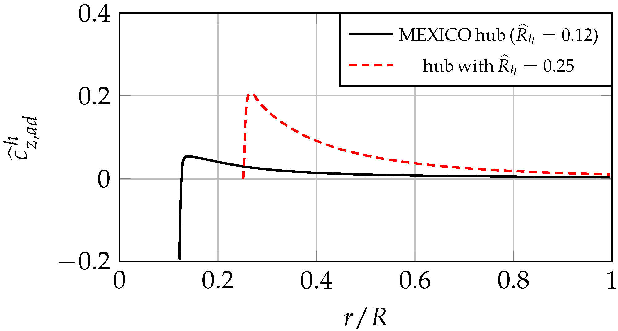 18] evaluated the influence of the hub presence using a ring-vortex free-wake uniformly loaded actuator disk model for different values of