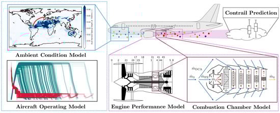 x, UHC, and soot emission indices, can be predicted at a selected operating point. Furthermore, an evaluation of contrail formation for both annually averaged and intraday ambient conditions is conducted, showing the benefit of considering ambient conditions in a finer temporal resolution. The results show the functionality of the presented MSAE platform and the necessity of performance and emission analysis under realistic conditions.