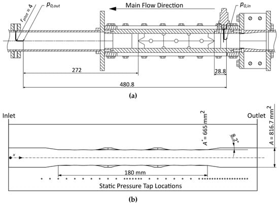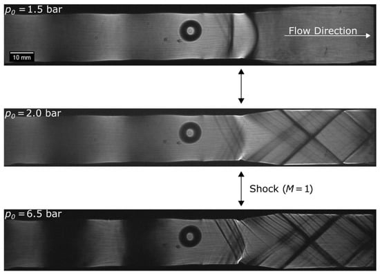 The main objective of the present experimental investigation was to collect qualitative results for the flow phenomena occurring in the considered pillow-plate channel. The present study was restricted to (high) subsonic inflow conditions because this flow regime is of major practical interest (an investigation into supersonic inflow conditions would require an additional Laval nozzle at the inlet zone, which was not part of the test section, see Figure 7).