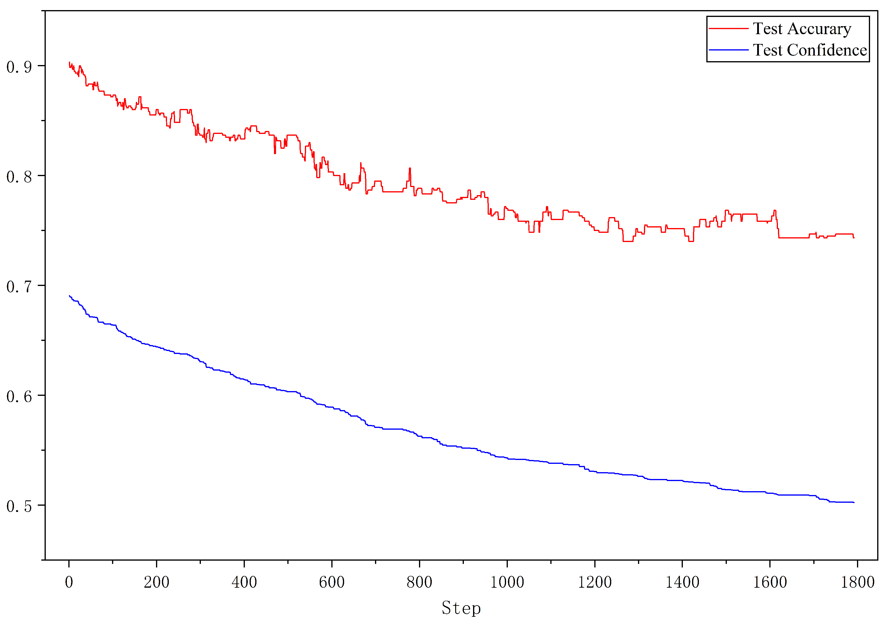 To defend against such model-based ciphertext identification, we propose to introduce an adversarial perturbation in the ciphertext level. Specifically, given an original ciphertext , we define an adversarial perturbation mask , which flips a subset of bits according to the rule , where ⊕ denotes the bitwise XOR operation. The perturbed ciphertext should preserve decryptability for Bob—since Bob, knowing m, can simply recover the original ciphertext as before decryption—but it should simultaneously mislead Eve’s classifier so that outputs an incorrect cryptographic algorithm label. Formally, the defense objective is to find an optimal perturbation mask that minimizes the classifier’s confidence on the true algorithm label while maintaining ciphertext reversibility for legitimate communication. In this setting, the adversarial perturbation acts as a protective layer on top of the ciphertext, directly deceiving model-based algorithm identification and thereby strengthening the robustness of cryptographic systems against attacks.
