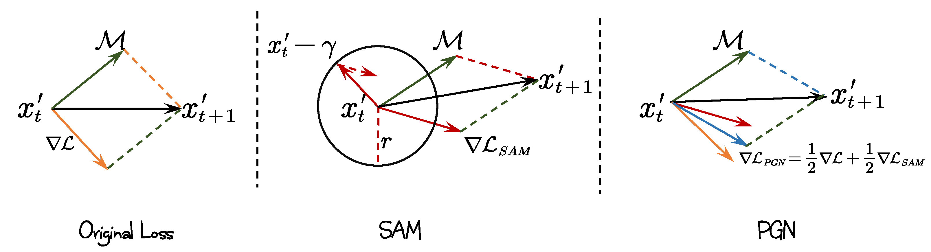 - We reveal the intrinsic relationship between the attack objectives of SAM and PGN in the context of adversarial attacks, demonstrating that the gradient of PGN can be expressed as a linear combination of the SAM gradient and the original loss gradient. This insight enables the extension of the optimization of adversarial example regions in SAM to PGN.