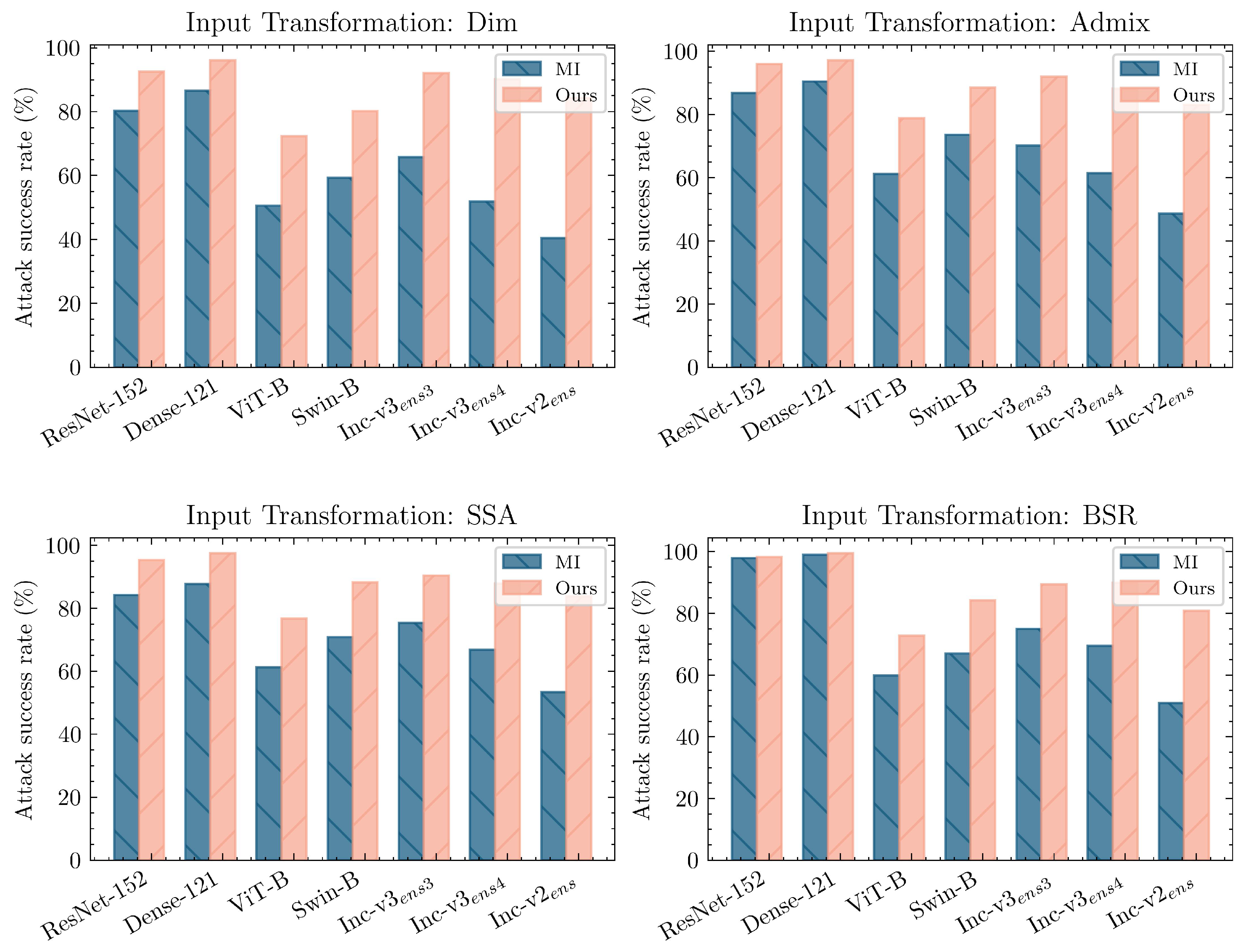 | Res-152 | Dense-121 | Inc-v4 | Swin-B | Deit-B | Avg. | Inc-v | Inc-v | Inc-v | Inc-v | Avg. | |