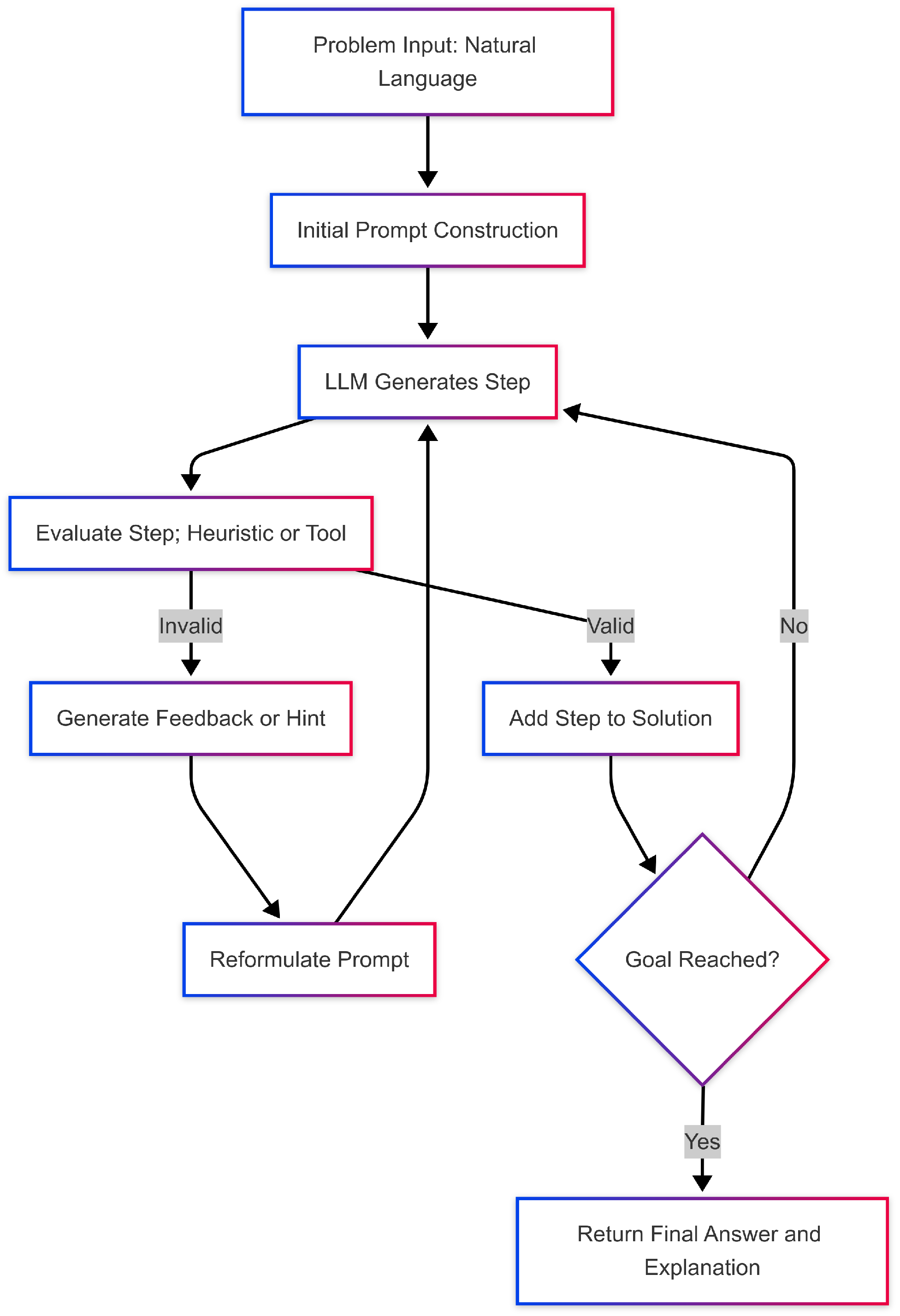In mathematical reasoning, this pattern mirrors human problem solving, where a mathematician drafts a proof, inspects unclear or incorrect steps, and revises the argument until a coherent solution emerges. LLMs, however, lack an internal notion of logical correctness, so error detection must be guided by heuristics, consistency checks, or external verification. For traditional mathematics, where reasoning is expressed narratively, these loops can substantially improve performance. Weak or contradictory steps can often be repaired by rephrasing, reordering, or restructuring the argument, and local contradictions may be fixed without rewriting the entire proof.
